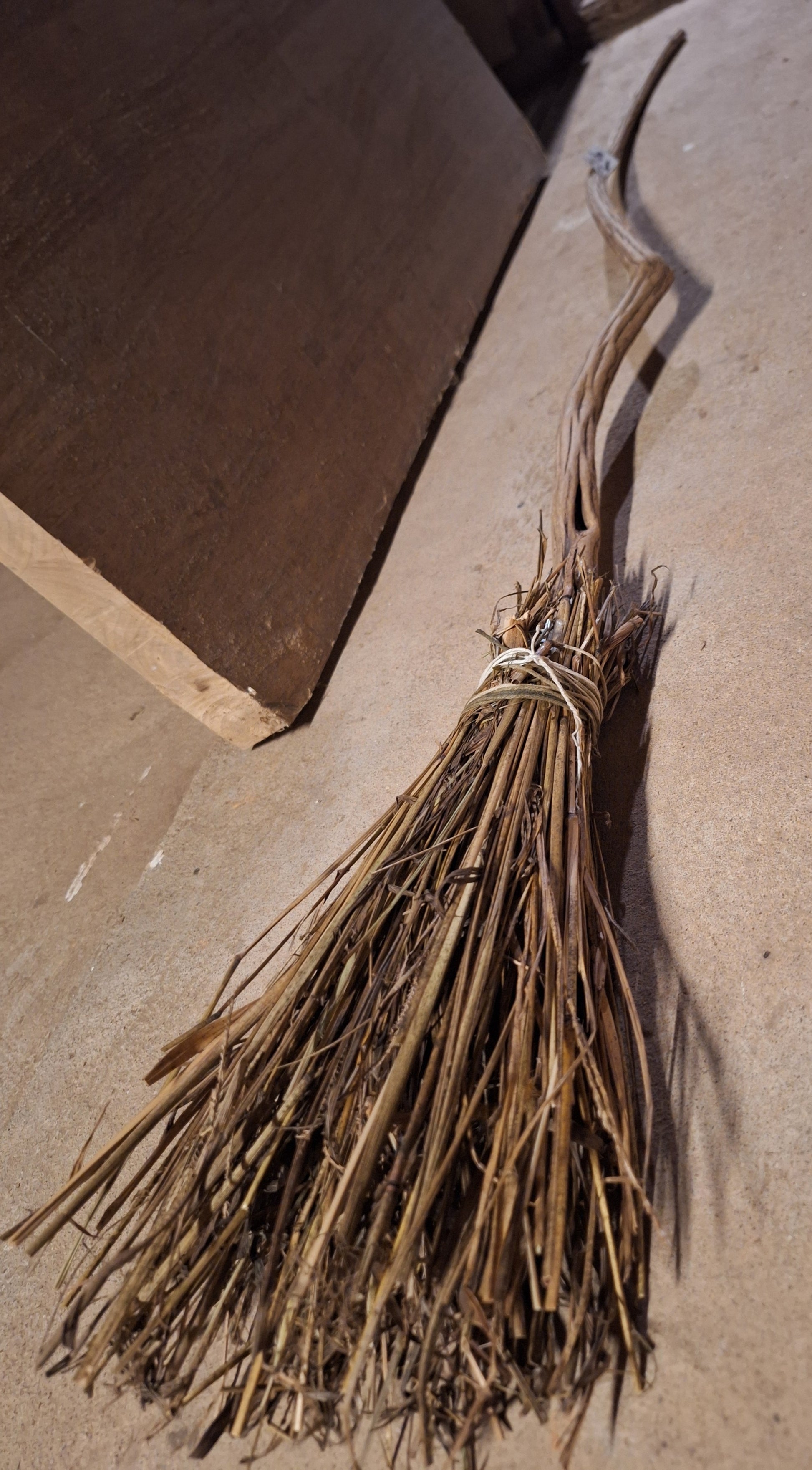 This handle is hand picked from the wild as is, straw i collected and tied together to complete broom